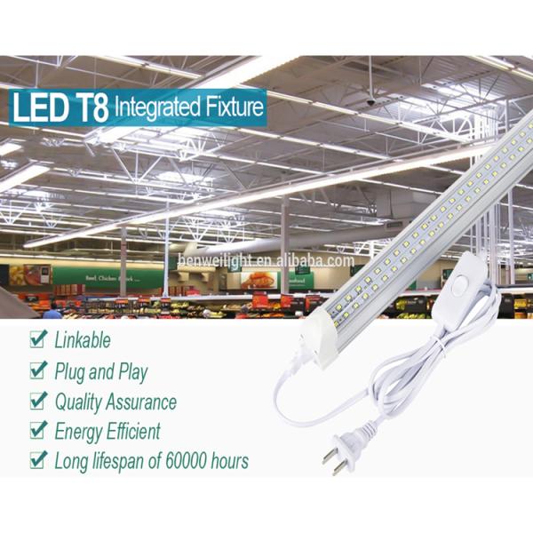 OEM ODM ETL CE ROSH Clear Cover 4ft 5ft 6ft 8ft T8 Double Row Integrated Led Tube Light Images |